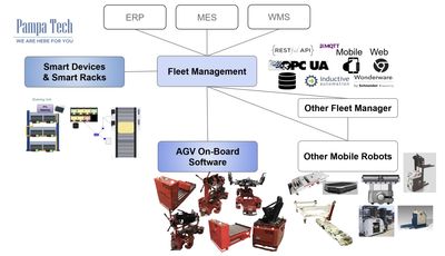 Pampa Technologies has engineered a robust library of software modules based on years of integrating Automated Guided Vehicles with production control and material handling systems. This modular architecture fast-tracks project development and provides a standardized, clean interface for integrating disparate manufacturing solutions effectively.